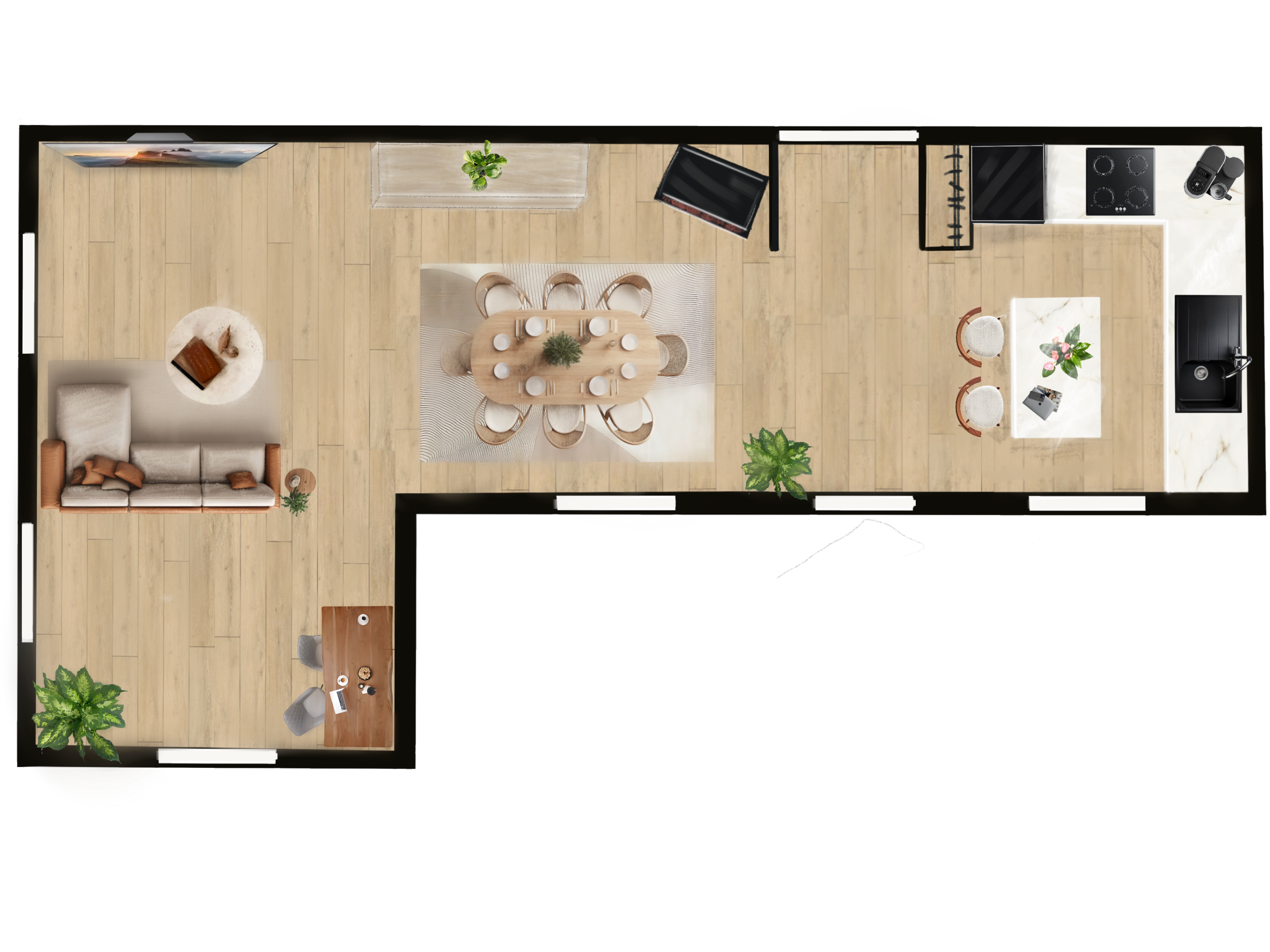 Les visuels 3D permettent de se projeter concrètement dans son futur intérieur, comme si l’espace était déjà aménagé.